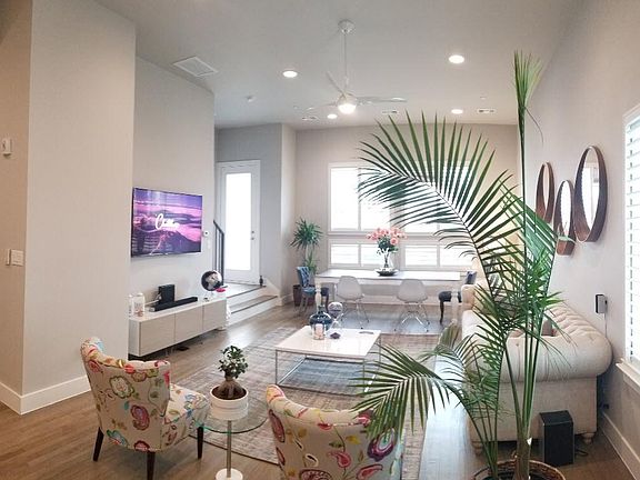 Sept 15 - Sept 30 FREE RENT NOT SUITABLE FOR SHORT-TERM LEASING OR SHORT-TERM HOSTING (such as Airbnb, HomeAway, VRBO, or FlipKey etc.) Incredible 4 story condo with unobstructed downtown views from the rooftop patio. This 3 bed 2.5 bath unit comes with a small yard and located in a Modern Gated Luxury community. Abundant natural light tall ceilings reclaimed hand scraped wood floors and chic finish-out make this home very unique! Don't miss the green features including Geothermal Heat & Air (incredibly low utility costs) All LED Lights energy star appliances low E double argon gas filled windows spray foam encapsulation and SlabTec piered foundation. Enjoy a beautiful evening on your private terrace. Minutes away from the business district in Downtown easy access to shopping in West Village and only a two-minute ride to fancy bars & restaurants in Uptown. A mile away from Klyde Warren Park Lower Greenville and Deep Ellum. 1-year minimum. 2-year preferred. 2150 sf 3-story modern townhouse. 12" ceilings Large master suite. 600+ sf private terrace with Downtown Dallas views. A balcony at the second floor (living room level). 2-car indoor garage with extra 10 car outdoor parking space. Geo-Thermal Energy System. All appliances included. Gated community. 2 Small Pets (combined weight less than 70 lbs. based on HOA bylaws) are allowed for $75 per pet/per month with Non-refundable $250 per pet deposit. Not wheelchair accessible. No smoking. The community has a single master meter for water consumption. Water/sewer/trash bill will be paid by the landlord and will be passed through the tenant ($150). Since it is a green home with a geo-thermal HVAC system, your electricity bill will be considerably low. Qualifications: Credit score 640 or higher. Verifiable source of income. No evictions. No recent past due/collections. No foreclosures in past 2 years. Utulities are not included.