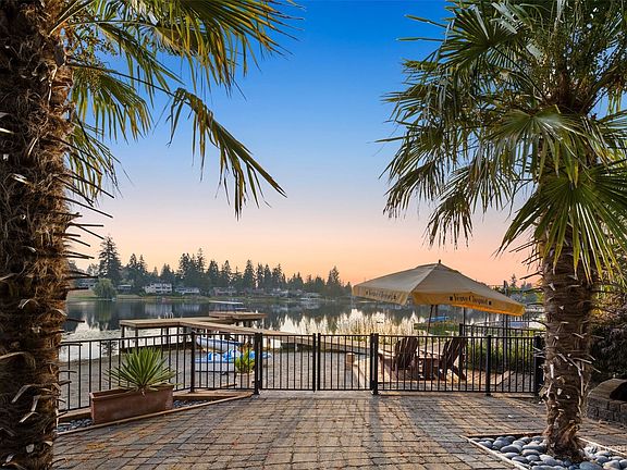 Blissful waterfront living awaits on beautiful Lake Serene! This sunny south-facing home offers a spacious lot, 60 ft of private sandy beach, large entertainment deck, beautiful yard w/palm trees & shared dock for all your lakefront activities. Interior has been lovingly updated throughout the yrs w/interior designer's touch - maple flooring, formal grand room, floor to ceiling windows w/180 degree views, skylights, designer kitchen w/high-end appliances & custom-built bar, library/study, & primary bdrm w/en-suite bath & walk-in. Lower level boasts an entertainer's rec room w/wet bar & wine cellar, 2 spacious bdrms, bonus room/gym & workshop. Courtyard parking, 2-car garage, & detached RV garage. Close to I-5, I-405 & Mukilteo ferry.