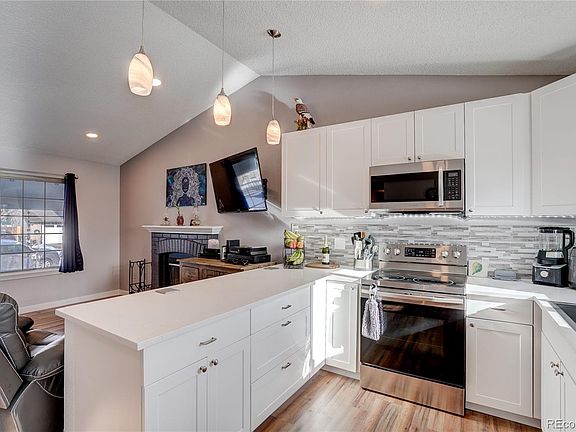 - Description: Fully Remodeled Kitchen With Crisp White Cabinetry And Countertops, Custom Tile, Upgraded Appliances And Built-In Chargers In The Countertops.
