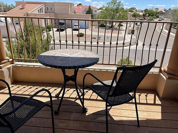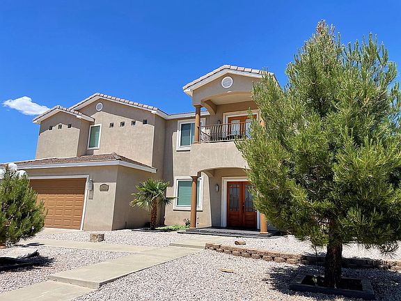 Large, open floor plan with high ceilings and plenty of space for a large or growing family. Travertine tile and hardwood floors throughout. Large master bedroom with gas fireplace insert, bar, mini-fridge, and sink. Large master bathroom with his and her walk-in closets. Mini-master bedroom with spa tub and walk-in closet. Two large bedrooms with Jack and Jill bathroom. All bathrooms have Silestone counters, and Kohler and Moen fixtures. Large great room and separate entertainment room with bar, sink, and minifridge. Large formal dining room and adjacent breakfast area. Open kitchen with island bar and wine cooler all covered by granite countertops. Large office perfect for work/school. 6” exterior walls with excellent insulation with radiant floor heating and refrigerated air conditioning. Multiple covered porches on front and back of the house, both up and downstairs for both private and family gatherings. Large garage with overhead storage and separate pet area. 8,500 gallon pool with DE filter and heater that can be used year-round. Garage can accommodate 2-3 vehicles and still have room for a workshop or exercise equipment. Extremely low maintenance xeriscaped front yard and brick patio in the backyard with French drain. Close to shopping, schools, and most anything you would need. Rio Rancho Public Schools: Rio Rancho Elementary (1.7 miles), Rio Rancho Middle School (3.5 miles), Rio Rancho High School (2.3 miles)