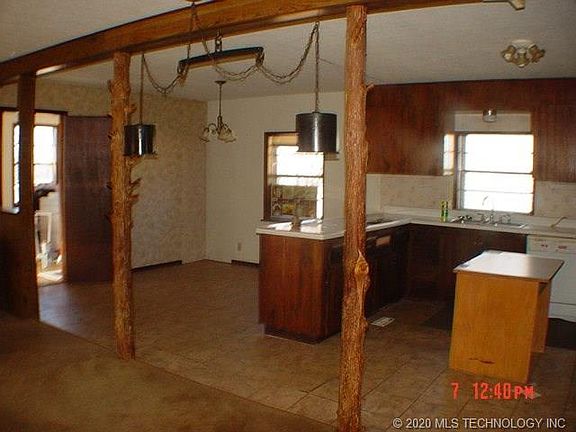2 bed and 1 bath could be 3 finish room out. 2 living areas and open design kitchen. 2 lots, detached garage/workshop area. Located within 1 block of Neosho River.