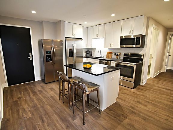 - Exterior features: App / Key fob entry system, Balcony, Built in closet, Built in closets, Dining nook, Energy efficient appliances, Garden, Geothermal Building, Green Living, HVAC, Heated secure parking, High Ceilings, High-speed Internet Ready, Induction Stovetop, King size bedroom, LVT Flooring, Large WIC, Modern Bath, Modern Kitchen, Modern baths, On-Site Parking (monthly fee), On-line tenant portal, Plenty of natural light, Plenty of storage, Private terrace, Queen sized bedrooms, Recessed lighting, Rooftop Clubroom, Rooftop ammenities, Running track, Stainless steel appliances, Starbucks (Retail space - main lvl), Tenant reward program, Track lighting