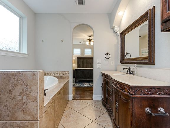 Gas fireplaceBalcony accessIsland and granite countertopsSeparate walk-in shower stallsGarden tubs