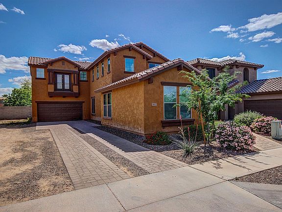 ''Model'' perfect Home with soaring ceilings, contemporary interior palette, plush neutral carpet, ceiling fans, window blinds, and double door entry to Den. Stunning eat-in kitchen features center island, granite counters, breakfast bar, black appliances, and upgraded wood cabinetry with stylish hardware. Create a feast with family and friends. Formal dining area and spacious family room with patio access. Amazing loft area with endless possibilities. Grand master retreat boasts French Doors to private balcony, large walk-in closet, and private en suite. Cozy backyard with covered patio, colorful flora, and endless blue skies. Community Playground. A must see ''gem'' in the desert!