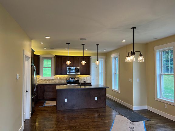 New Construction, 3-bedroom, 2.5 bathroom house in Skaneateles School District for rent. Country setting, yet 4 minutes from the village, with public utilities in walking distance to Skaneateles Conservation area. First floor features a laundry/mudroom, kitchen open to living room, primary bedroom with ensuite and walk-in closet as well as a bathroom and entry closet. Second floor includes 2 bedrooms, full bath, and a study nook/play area. Property includes front porch, back entry to mudroom, heated sidewalks, wireless sound system, full unfinished basement and a detached heated, 2 car garage with electricity. Property has hardwoods throughout, travertine showers and baths, all solid surface counters, stainless steel appliances, sound system and central air. Oversized garage with adn additional basement with over 1300 sqft of storage.