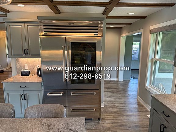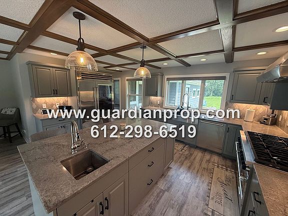 One level country living in Lake Elmo at it's finest! Fully updated house available October 1. Gourmet kitchen with a coffered ceiling, quartz counters, Wolf Range with a hood and spaghetti arm, Sub Zero fridge, large island, and a coffee bar with wine fridge.