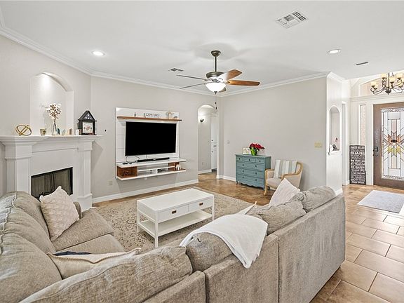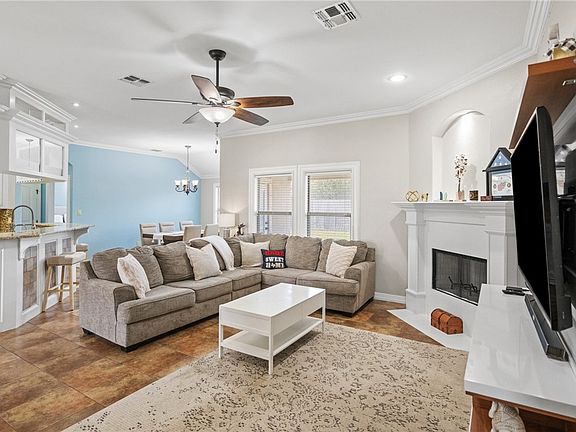 This 4-bedroom, 2-bath home offers a spacious open layout with split bedrooms for added privacy. The chef’s kitchen overlooks the living room and features abundant counter space, perfect for entertaining. The cozy wood-burning fireplace adds warmth, while custom ceilings highlight each bedroom. The main suite includes a jetted tub, walk-in shower, and oversized dual-sink vanity. Step outside to enjoy the above-ground pool with deck, ideal for outdoor fun. Located in a quiet community, this home blends comfort and style in every detail.