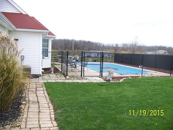 Wow this home in Crestview Schools shows great! Don't miss the chance to tour this well kept 1 story home on 1.3 acre in New Waterford Ohio. Only 13 years old this home offers pinewood plank floors through-out, master bedroom with bath and walk-in closet, interior of home is freshly painted, kitchen with new granite counter-tops, sink, faucets and new stainless steel fridge, stove and dishwasher. Outside updates include a new 5 ft fence around pool area, a dog run, light fixtures on porch , door bell and surge protector. The pool installed in 2006 is heated, in-ground, 14 x28 - holds 14,000 gallons, has a new pump and is 5-8 ft deep. Basement offers 12 course high ceilings, textured skid proof floor, a full bathroom, laundry area, exercise room and 2 more rooms for storage. There is also a new water softening system. Home shows pride of ownership and has so much to offer!