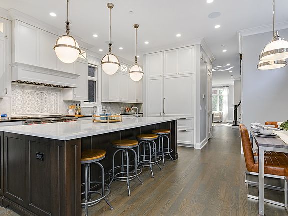 Thoughtfully designed, this beautiful 6-bed, 5.2-bath Southport Corridor home offers the finest finishes and luxurious touches throughout. The main level boasts an amazing chef's kitchen complete with high-end Sub-Zero and Wolf appliances, quartz countertops, spacious breakfast area, oversized island, and a butler's pantry for additional storage. Located on the second level, the expansive master suite affords two walk-in closets and a spa-inspired Carrara marble bath with heated floors, steam shower and soaking tub. Two additional en-suite bedrooms, and a convenient laundry room are located on the second level. Offering ample space, the third level includes yet another bedroom and a large rec room with wet bar and custom built-ins, all leading out onto the enormous rooftop deck. Designed with ease of entertaining in mind, the lower level features an additional rec room with wet bar and beverage fridge. The lower level comes complete with radiant heated floors, second laundry room, and two private bedrooms ideal for guests. No detail was overlooked when crafting this spectacular home, which features custom millwork, built-in speakers, and radiant heat for the front stop, sidewalk, and garage.