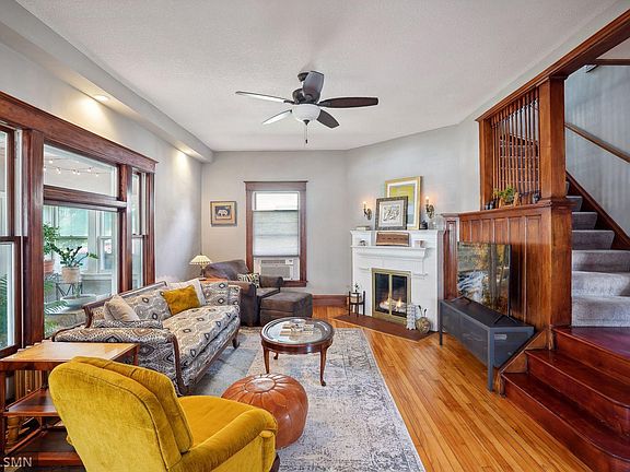 Discover the timeless allure of this 1905 property featuring 4 bedrooms on one level, including a private deck off the primary bedroom, accented by natural woodwork and hardwood floors throughout. Relax in the inviting closed porch or entertain in the formal dining room adjacent to the updated modern kitchen with stainless appliances. Outside, a fenced-in backyard boasts a large deck perfect for relaxing evenings. Located within walking distance to many restaurants and parks and close to various lakes and trails, this home seamlessly combines old world charm with modern comforts for a truly exceptional living experience.