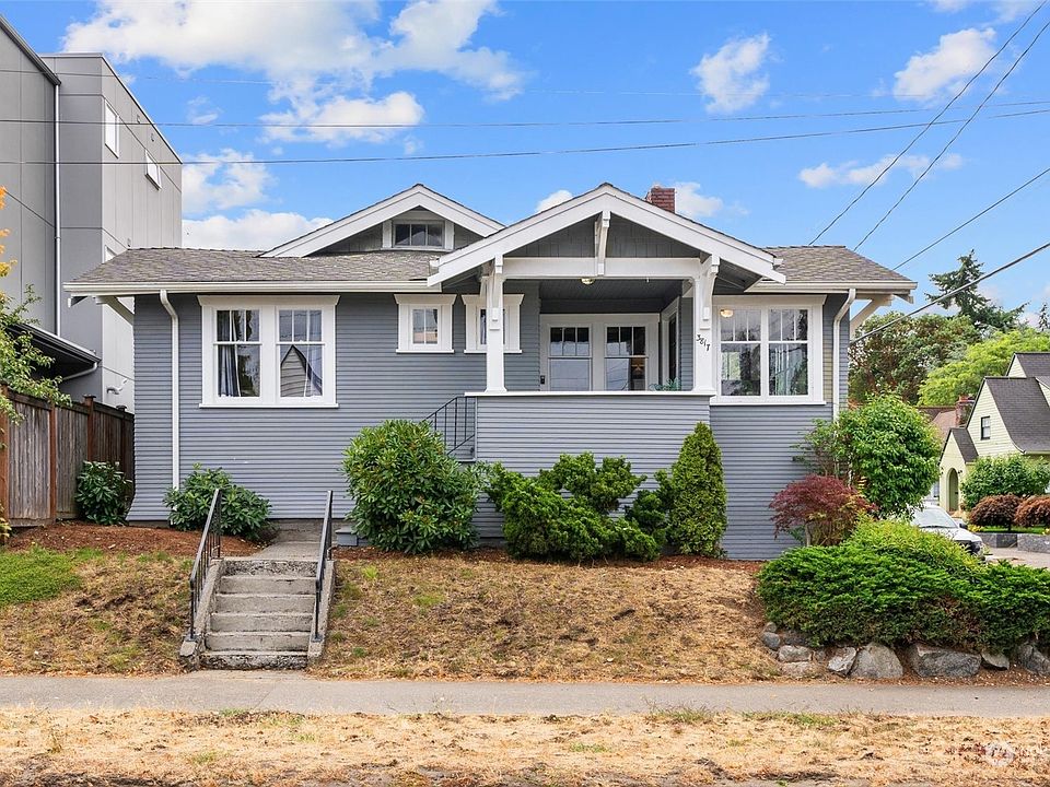 1916 North Admiral Craftsman on a prime corner lot with views! This home beautifully blends timeless classic details with modern updates, featuring wood accents, built-in cabinetry, and thoughtful finishes. Versatile layout with spacious bedrooms, updated bathrooms, and gorgeous kitchen with a gas range, new quartz countertops, and new appliances. The open dining and living spaces flow into a sunlit bonus room, perfect for a home office. Cozy gas fireplace. Experience water, mountain, and territorial views from the main level, plus a North-facing covered patio to soak in the scenery. New water heater. Spacious flexible Rec Room downstairs. Dedicated driveway parking. 82 Walk Score, walk to Met Market, Admiral theater, coffee shops & more.