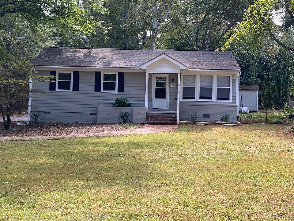 Renovated 8 months ago with new kitchen (cabinets, granite countertops, micro,range, dishwasher (all stainless). Baths remodeled with new flooring, vanities, full walk in shower. (No tub). Hardwood floors refinished throughout. No carpet. All interior repainted. Crown molding throughout house. Paddle fans. Skylights. All on a 0.75 acre secluded lot with public water/sewer in close proximity to downtown Raleigh. Exterior storage shed. Back and front porches. Dogs accepted with some breed exceptions. Mostly fenced. Please, don't even ask about cats. Thank you.