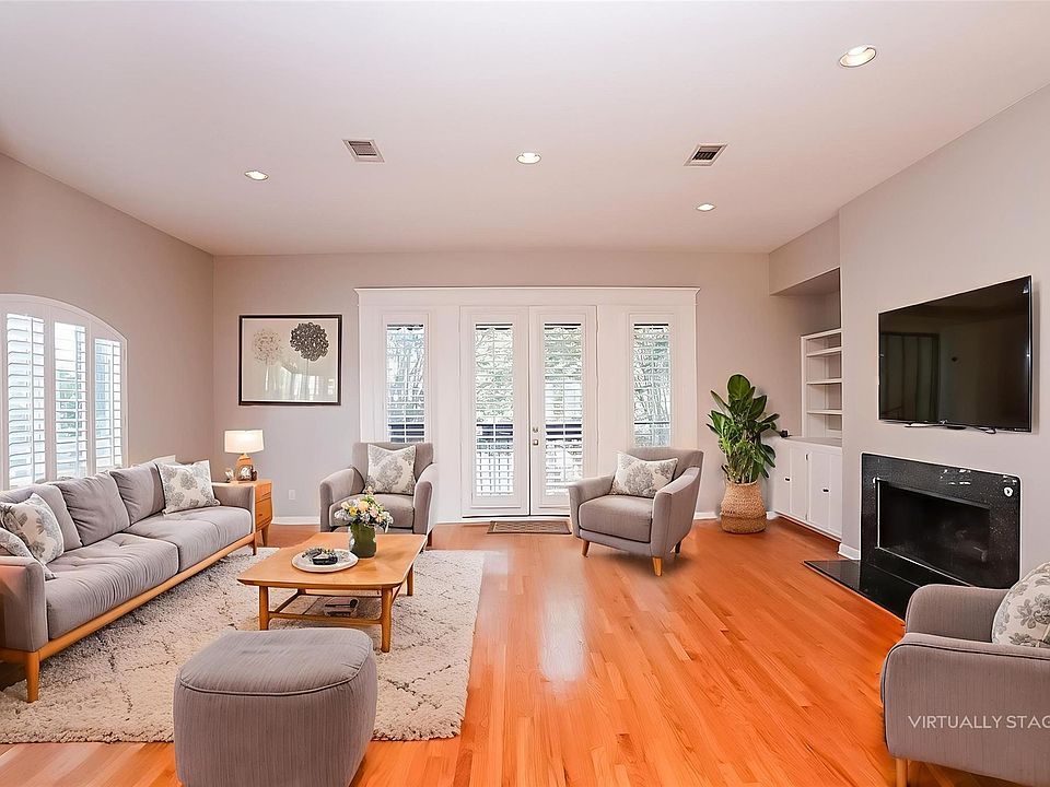 Cozy fireplaceContemporary curb appealMultiple balconiesFreshly painted exteriorPristine carpetingEpoxy-coated garage floorHardwood floors