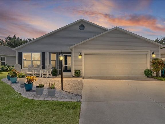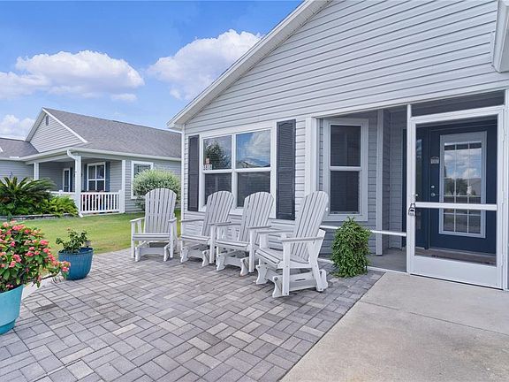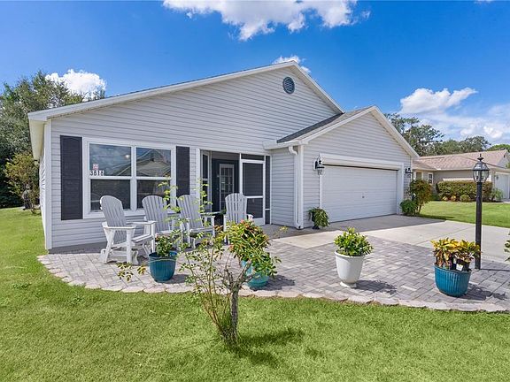 ~$5,000 PRICE REDUCTION~ ~2013 ROOF, HVAC & Hot Water Heater~ ~NO HOMES BEHIND~ ~HIGH, KNOCKDOWN CEILINGS~ ~LUXURY VINYL FLOORING~ Tucked away in the Village of HILLSBOROUGH, this inviting 3/2 SEABREEZE model offers comfort, style, and privacy with no homes behind—just a serene backdrop of shrubs, fencing, and low-maintenance rock and grass landscaping. As you walk up to the screened in front porch, enjoy the curb appeal with the lovely PAVERED FRONT PATIO where you can enjoy visiting with your neighbors! Inside, soaring VAULTED ceilings and an OPEN LAYOUT create a bright, spacious feel. The entry flows into the living and dining areas with LUXURY VINYL floors, updated lighting, ceiling fans, and custom blinds. The kitchen is designed for both function and beauty with high-definition countertops, a CENTRAL ISLAND, and recessed lighting. The primary suite provides VAULTED ceilings, LUXURY VINYL flooring, a ceiling fan, and a CUSTOM WALK-IN closet. The ensuite bath offers DOUBLE SINKS, high counters, a WALK-IN shower, and a linen closet. Two comfortable guest bedrooms provide flexibility for family or office space, each with modern finishes, ceiling fans, and built-in closets. A well-appointed guest bath features a shower/tub combo, high-definition counters, and storage. Enjoy everyday convenience with an INDOOR LAUNDRY ROOM featuring cabinets and a laundry tub, plus a 2-car garage with cabinets, concrete floors, and an ELECTRIC SCREEN. Step outside to the screened lanai with ceramic tile and ceiling fan, the perfect spot for morning coffee or evening relaxation. This home combines modern upgrades, thoughtful details, and a peaceful setting. Minutes from Brownwood, Evans Prairie Country Club, Hillsboro Pool, Multiple Rec Centers, and shopping and dining along CR466A and St Rt 44.
