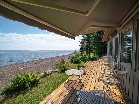 Welcome to your slice of Lake Superior paradise on this exceptional 1.5-acre property that perfectly balances privacy with convenience. This thoughtfully designed 2,000 square foot home offers comfortable one-level living with three bedrooms and two full bathrooms, including a luxurious primary bedroom featuring a patio door out to the deck, a wall of windows overlooking "the big lake" and a spacious ensuite bathroom with a soaking tub for those well-deserved moments of relaxation. The home's layout maximizes the stunning lake views while providing abundant storage throughout. Large windows frame the many moods of Lake Superior, creating a natural artwork display that never gets old. The property's main attraction is its unique sandy beach, a rare find along this rugged coastline that offers direct access to the world's largest freshwater lake. Adding to the property's appeal is a charming seasonal guesthouse with one bedroom and one bathroom, perfect for hosting family and friends or creating a private retreat space. The two-stall garage provides convenient storage for vehicles and recreational equipment. Location-wise, you'll enjoy the best of both worlds. The property sits just fifteen minutes from Grand Marais, offering easy access to dining, shopping, and community amenities. Yet you're close enough to walk to the beautiful Judge Magney State Park, home to the Devil's Kettle waterfall, and the historic Naniboujou Lodge with its famous dining and unique architecture. This rare opportunity combines luxury, privacy, and natural beauty in one of Minnesota's most sought-after locations. Whether you're seeking a year-round residence or the ultimate North Shore getaway, this property delivers an unmatched Lake Superior lifestyle. Approximately 30' of the beach is owned by the state park. All measurements to be verified by buyers & agents.