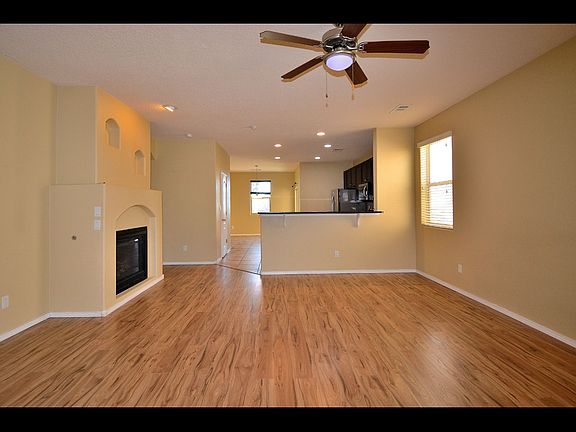 This property features an open-concept design and incorporates laminate wood, tile, and carpet flooring throughout. It includes three bedrooms and three bathrooms, creating a well-lit and airy environment. The master bedroom is particularly spacious and is complemented by expansive guest bedrooms and a large walk-in closet. The kitchen is equipped with stainless steel appliances, enhancing the bright and welcoming atmosphere of the living area, which also includes a fireplace for additional comfort. The enclosed backyard is accompanied by a two-car garage. This property is ideally located just minutes from Santa Fe Community College, providing convenient access to the highway and nearby shopping facilities.