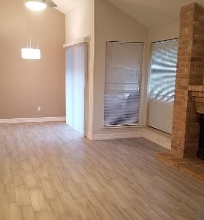 Freshly updated 2bed, 1.5 bath, 1car garage home with vaulted ceilings, open floor plan, light neutral color pallet, abundance of natural light, granite counter tops, attractive easy to clean wood look porcelain tile throughout, backyard looks out onto green space and includes mature Live Oak for shade. Rent is 1245 per month and deposit is 1245. Pet policy is contingent upon interview. Tenant is responsible for: water, electricity, gas, lawn maintenance, and internet and/or cable.