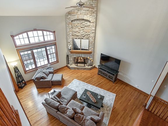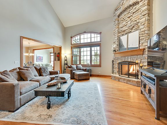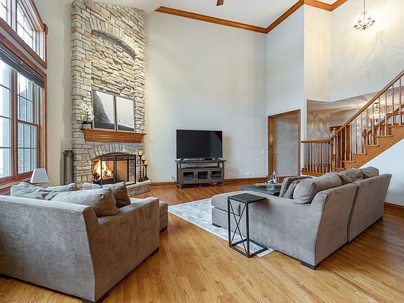 Luxurious townhome (former builder's model) with numerous upgrades and amenities - you will be impressed! Detailed mill work, upgraded fixtures, hardwoods on entire first floor... Elegant neutral decor... Quality finished deep pour walk-out basement and 4,000 square feet of living space. Open floor plan with dramatic living room with 20 foot ceiling and massive stone fireplace... Huge granite kitchen (note size) with custom cabinetry and Stainless Steel appliances!! Dinette opens to vaulted 4 season sunroom and upper deck!! Master bedroom with vaulted ceiling, 2 walk-in closets and vaulted luxury bath!! Walk-out lower level with fireplace, full bath, and rec areas!! Great location close to Geneva Commons shopping and restaurants, Otter Cove Aquatic Park, and Metra! Move-in condition!!