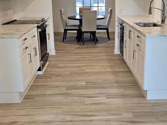Beautifully remodeled 3 bedroom, 2 bath house with a 2 car garage and large storage unit with electricity. The home features a fenced in back yard and has canned lighting throughout, marble countertops, stainless steel appliances, custom cabinets, tiled showers, vinyl plank flooring throughout The house features a split bedroom design.