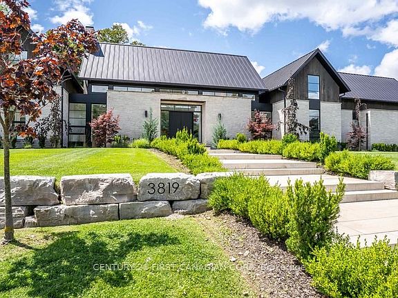 A Masterpiece of Scandinavian Design and Modern Luxury. Discover 3819 Deer Trail, a one-of-a-kind luxury residence nestled in the heart of Lambeths exclusive Deer Trail enclave. Set on a private cul-de-sac and surrounded by nature, this home offers a rare blend of peaceful seclusion and sophisticated urban living. Inspired by contemporary Scandinavian architecture, the home radiates warmth and minimal elegance. Its striking stone exterior is both timeless and modern, creating a bold first impression. Inside, youll find over 8,500 square feet of thoughtfully designed space, where every detail reflects quality craftsmanship and intentional design. This 5-bedroom, 5 1/2 -bathroom home is designed for elevated everyday living. The main level features 26-foot vaulted ceilings, flooding the space with natural light and creating a stunning sense of openness. The chefs kitchen is equipped with premium appliances, custom cabinetry, and an oversized island, flowing into an outdoor living area perfect for entertaining or unwinding in private. The lower level is a true extension of the homes luxurious feel, offering a home theatre, a stylish bar, second kitchen, home gym, sauna, guest suite, and a large great room -ideal for hosting or relaxing. For car enthusiasts or large households, the home includes a 5-car garage and parking for up to 16 additional vehicles. 3819 Deer Trail is more than a home - its a retreat. A place where modern elegance, Scandinavian simplicity, and natural tranquility come together to offer an unparalleled living experience in London, Ontario. Located minutes from schools, trails, shopping, and Hwy 401 access. A rare offering in one of Londons most sought-after neighbourhoods.