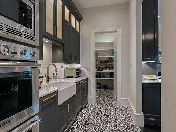 Backing to a greenbelt, this remarkable beauty is the perfect combination of elegant and modern finishes featuring contemporary light fixtures, soaring cathedral ceilings, and a backyard oasis with four living areas, a sparkling pool with waterfalls, and a large grassy area! You're greeted with an elegant iron and glass door, wood flooring, a grand staircase, and a stunning chandelier. The vast formal dining room features a beautiful hanging chandelier, an adjacent butler's pantry and a walk-in chilled wine room. The wine room has a key lock on the door and can hold up to 360 bottles of wine on the display pegs and additional bottles in the lower floating storage. With modern finishes and a wood beamed/designer wallpaper ceiling the chic study features plantation shutters, and custom drapes. Open to the gourmet kitchen, the wood-beamed family room has a captivating petrified wood wall surrounding the woodburning fireplace with gas logs, and built-ins. You can also enjoy the view of the backyard oasis through a wall of windows, with custom shades and drapes. The vast contemporary kitchen offers a high ceiling with a John Richards chandelier, modern light fixtures, an enormous eat-in breakfast bar with a farmhouse sink, Calcutta gold marble countertops, elegant black and gold appliances, ILVE Majestic 6-burner gas with griddle and grill warmer with wok attachments, and 2 ovens, Thermador double refrigerator and freezer, and 2 Thermador dishwashers. The caterer's kitchen is equipped with 2 Thermador ovens, farmhouse sink, stainless-steel appliances and a large walk-in pantry. You can access the back staircase from the catering kitchen. You can access the outdoor living area through the glass wood sliding doors. Retreat to the expansive primary suite with a high ceiling and sitting area with a woodburning fireplace. Unwind in the lavish spa-like primary bathroom with elegant marble floors, 2 vanities, free-standing bathtub, large separate shower, and custom walk-in closet. Head upstairs and spend time in the upstairs living area or entertain in the upstairs game room with a wood-beamed ceiling. It also has an eat-in walk-in wet bar with a Bosch refrigerator and microwave. Walk outside to the large balcony overlooking the sparkling pool! Enjoy the ambiance of a movie theater from the comfort of your own home. The media room is equipped with wall sconces that provide the perfect lighting and speakers. Upstairs there is a second primary suite with a wall of windows with plantation shutters and a spa-like bathroom with a vanity space, separate shower, a garden bathtub, and a walk-in closet. In addition to the second primary suite, there are three secondary bedrooms, one downstairs and two upstairs! All of them have ensuite bathrooms and walk-in closets! Take advantage of an at home gym equipped with mirrored walls and a walk-in closet. This room could also be used as a nursery. Prepare to never want to leave the private backyard oasis complete with two covered outdoor living areas; two additional sitting areas; sparkling pool and spa with fountains; and a large grassy area. Host your family and friends under the outdoor living area with a woodburning fireplace, TV, and a built-in Blaze grill with sink and refrigerator. Take a dive into the inviting pool or enjoy the oversized spa in the backyard oasis. There is enough space for the addition of an elevator! Four-car garage! 2024-06-25