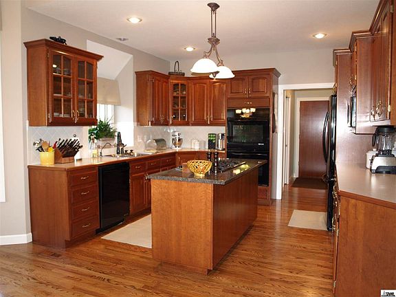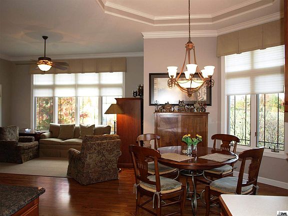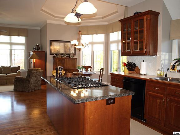 A Great Plan built by Heritage Homes. Extra's & quality here. Impressive street appeal. Entry- 9x12 foyer, tall ceilings, crown moldings, wood floor entry, office, kitchen/hearth room, beautiful cherry cabinets in kitchen, huge master suite w/sitting room, spacious closet & bath. Family/rec room w/fireplace, 2nd kitchen, exercise room & more in walkout basement. Quality throughout, multi-level decks, corner lot. This is a beautiful home!