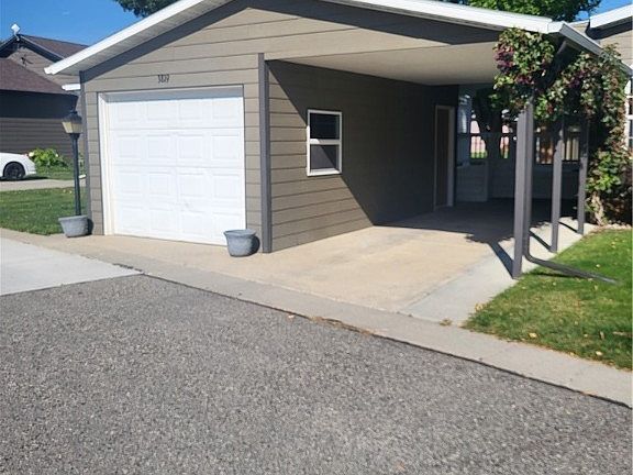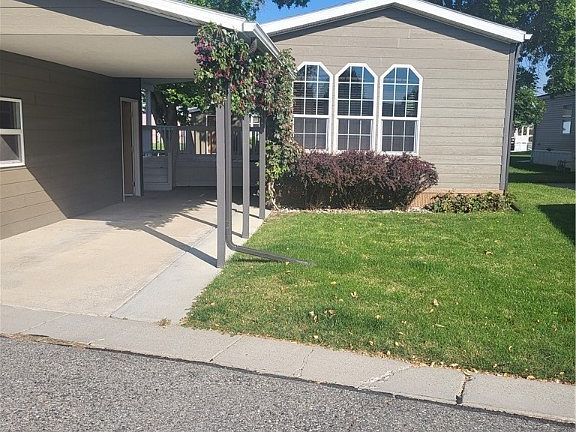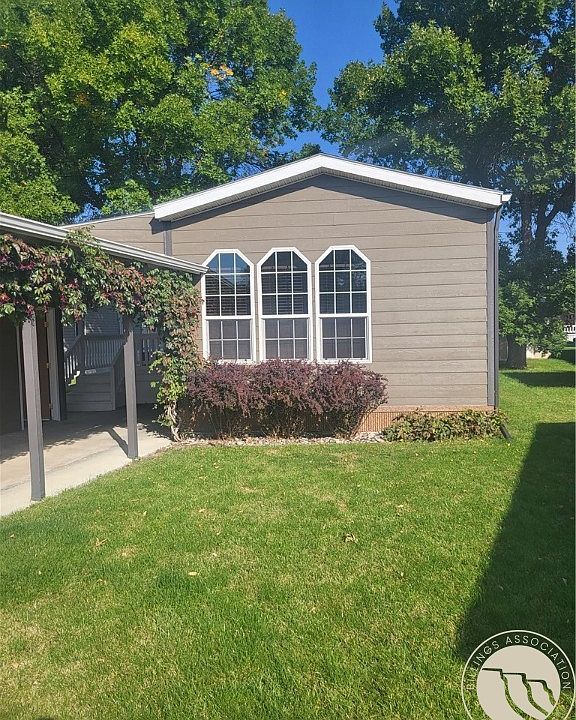 Very well maintained manufactured home located in popular Shiloh Village Estates. 3 bedrooms - extra large primary bedroom and extra large bathroom. Living room is elevated above the kitchen making for a nice open concept. Large kitchen has windows facing front yard and street with a dining area, many cupboards, pantry cupboard, island, newer stainless steel appliances. Covered front deck, oversized one car garage, covered carport, 8x12 storage shed. Exterior siding is hard board with corrugated steel skirting that resists denting. Rain gutters installed in past three years. Home is conveniently located close to the second gated entrance on 38th Street W with no homes directly across the street in front of the home. HOA is $545, one of the lowest of all parks-includes water, irrigation water, sewer, trash, snow removal. Buyer must be approved by management. Listing Agent is Seller.