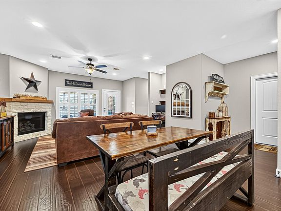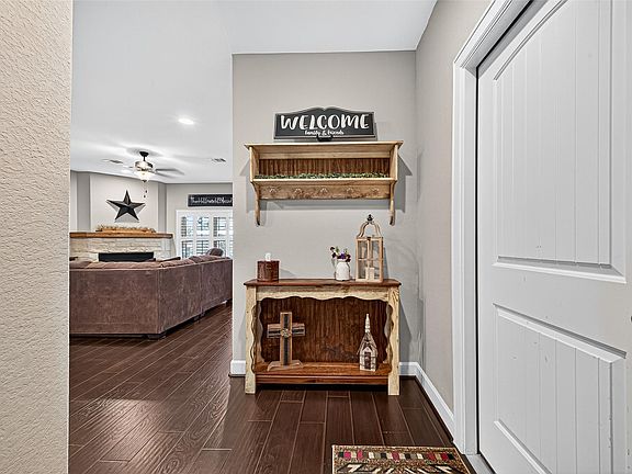 Welcome to this beautiful home in Highland Pointe featuring 3 bedrooms downstairs with a large upstairs flex room that can serve as a 4th bedroom or game room! Designed with accessibility in mind, the home offers oversized doorways (32" to bedrooms and baths / 36" to the primary suite) & no carpet - only gorgeous wood and tile floors throughout. You'll love the large open layout with lots of natural light through the plantation shutters, cozy gas log fireplace & massive laundry room with storage closet..plus more storage space under the stairs! The primary bath & secondary bath each have double sinks! Custom cabinetry in kitchen and baths! Mudset shower in the primary bath is an added custom touch. Step outside onto the huge covered patio with a gas stub-out for BBQs. No direct back neighbor for added privacy! Workshop in the back yard perfect for tools and mowers. Other highlights include roof 2024, oversized garage, walk in attic, 7-camera security system. No flooding here!