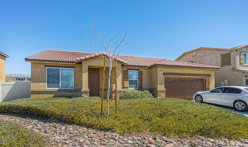 Immaculate single story home on an oversized lot. Drought tolerant front yard with beautiful rock riverbed. Open floor plan with large kitchen dining and family room all open to each other. The kitchen has beautiful granite counters with a large island and bar seating and stainless steel appliances. High ceilings and recessed lighting in the living area. Large living room/bonus room is perfect for gatherings. Master bedroom is spacious with a private master bathroom with dual sink vanity, large soaking tub and separate shower. Three additional bedrooms are generously sized. Laundry room is located inside as well. Rear yard is very large with concrete patio pad and ready for you to come and use your imagination to create a beautiful outdoor entertaining space! For more info Text CAT to 59559