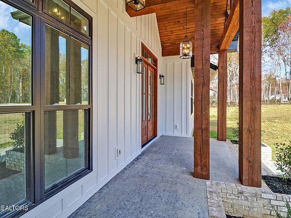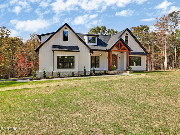 Beautiful 3 bedroom 2 1/2 bath modern farmhouse located in the desirable Creekview community, just outside Jamestown and minutes from Big South Fork National Park. This home features 10-ft ceilings, 8-ft entry doors, and Pella windows and doors throughout. The kitchen is designed for the chef at heart, showcasing quartzite countertops and backsplash, a gas range with electric oven and microwave combo, Kraus faucets, pot filler, and extra tall upper cabinets with glass toppers to the ceiling. A hidden butler's pantry with grocery door to the garage adds convenience and storage.
