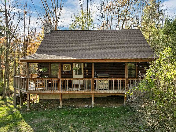 Charming Log Home with Direct Lake Access – A Rare Gem in Goshen! Claim this beautiful log home, tucked in a tranquil country paradise and presented for the first time by the original family. Spanning nearly 8 private acres (7.99 across two lots—the home resides on a 0.39-acre parcel with an attached 7.3-acres), this property boasts direct access to pristine Gunnison Lake, a 60-acre oasis ideal for swimming, kayaking, & fishing. Just behind Mount Sunapee, this is your four-season sanctuary, blending rustic charm with boundless adventure. Venture out to the scenic Ruth LeClair Trail, a captivating 3-mile loop around the lake, or hop onto snowmobile/ ATV trails for exhilarating year-round escapes. Inside, the home captivates with an inviting open-concept, soaring cathedral ceilings, a dramatic fieldstone fireplace, and a generous wraparound porch—your perfect spot for savoring sunrise coffees or sunset barbecues amid nature's symphony. The walk-out basement with a wood stove adds potential for a rec room or additional living space. The 7.99 acres brings incredible possibilities, including the potential to subdivide into extra home sites for a family estate or investment opportunities (subject to town approvals and zoning guidelines). Just 15 minutes from Mount Sunapee and a 2-hour drive to Boston, seize this chance to claim a slice of serene wilderness with unmatched space and infinite outdoor pursuits. Opportunities like this don't last—call today to arrange your private tour!