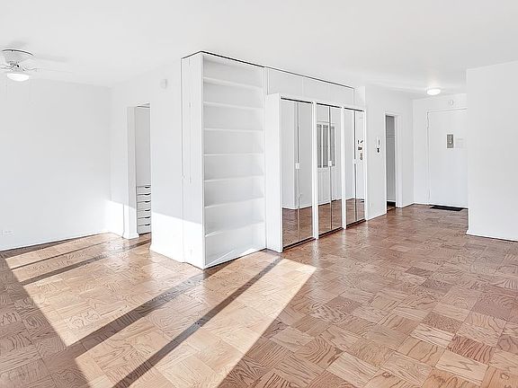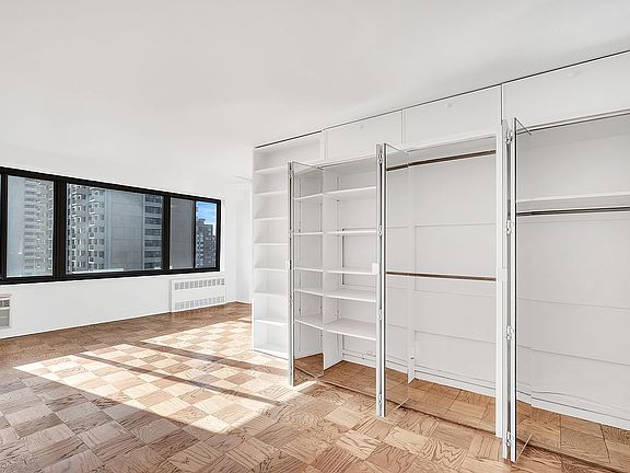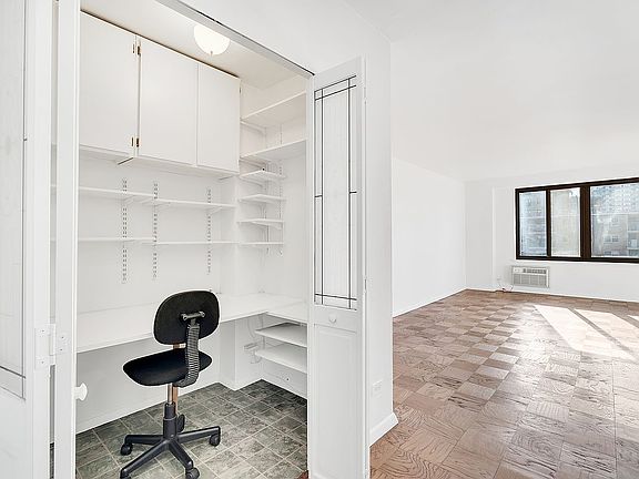 Sunny, spacious and capacious alcove studio in a full service condominium. Ingenious built-ins create a home that delivers better living per square foot! Fully equipped separate kitchen with butcher-block countertops, dedicated home office, dressing area, wall-to-wall thermal windows, thru-wall air conditioner and parquet floors. Common charges include the $65.31 monthly assessment.