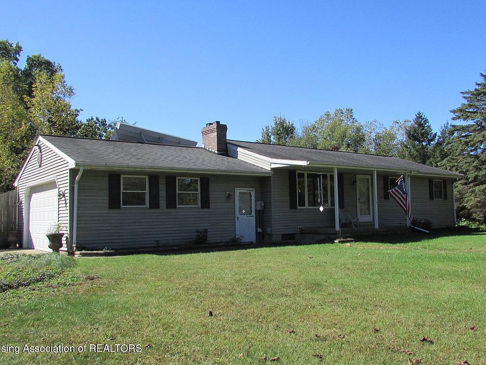 Very well maintained ranch house on 1 acre. 3 bedrooms and 1.5 baths. Nice screened in sun porch and full walkout basement. House has solar on roof of garage. New carpet & newer Pella windows. Radon mitigation system has been installed. Ingham Co Health Dept Conformance letter is available. Dansville school but Mason address. Seller reserves Bell and lawn mower. Dishwasher does not work.