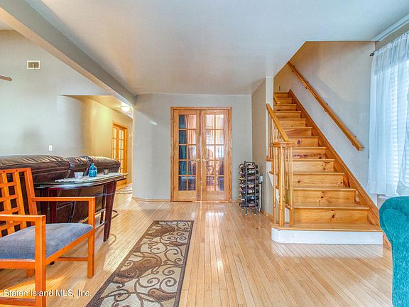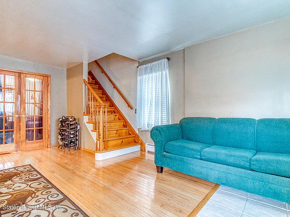 Welcome to this well maintained 3 Bedroom colonial on a 75x107 property in the heart of Tottenville. This home features a ring doorbell, large entry, living room with wood burning fireplace, hardwood floors, bedroom with French doors. First floor is 30x50. oversized kitchen with wood cabinets, siltstone granite counter tops and backsplash. Full bath with washer/dryer. Family room with French doors. Sliders to deck and yard. 2nd floor 2 large bedrooms with plenty of closet space and full bath. Baseboard heat. Attic with solar attic fan and pull down stairs. Crawl space basement with a room and plenty of storage.