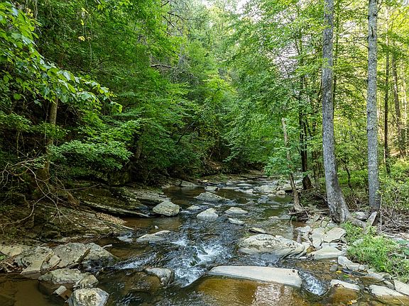 Welcome home to your picture-perfect haven nestled amongst a gorgeous, upscale gated community w/paved roads, waterfalls, fishing pond & manicured common areas. Let the sounds of the water soothe you as you listen to the babbling yet serene Fausett Creek that runs on 2 sides of the property w/over 1,000 ft of frontage. A better setting would be hard to find with 2.86+AC at the end of a cul-de-sac ensuring utmost privacy. This meticulously maintained home offers endless comfort, relaxation & entertainment possibilities. The landscaped yard leads to this welcoming home finished in a blend of Hardie-board siding, stacked stone & stucco. Inside, rich hardwood floors, high ceilings & classic crown molding greet you. The formal dining room flows seamlessly into the spacious great room w/ floor-to-ceiling stone fireplace, large windows & timeless built-ins. The kitchen, a chef's dream, features ample cabinetry, breakfast bar, double ovens, gas cooktop & pantry. The adjacent large dining area leads to a screened-in porch & an expansive deck. The main level also includes large laundry room/mudroom, access to the oversized 2-car garage, and add'l master BR & BA. On the opposite side of the house is the master sanctuary w/tray ceiling, bay window seating area & luxurious spa-like bath that has dual vanities, soaking tub, walk-in shower & sep room w/ toilet & bidet. On the 2nd floor, find a large BR with dormers & window seat and very large en-suite BA, along with a massive BR w/adjoining BA plus an attached large bonus room making the perfect in-law setup or secondary master suite. There is another bonus room at the end of the catwalk. The full lower level offers 2 living areas with a kitchenette, double-sided rock fireplace, full bath w/walk-in shower, office, bonus room full of windows & screened-in porch plus another large covered porch for enjoying the lush surroundings. Spend hours lazing by your personal slice of creekside paradise & enjoying your private acreage.