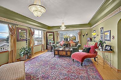 This classic 1940's Estate & West Seattle landmark looks proudly upon commanding views from its hilltop vantage point. Timeless architecture & craftsmanship marry an excellent floor plan to lifestyle and entertaining needs. Grand, light-filled formal spaces w/large windows frame views throughout. Private courtyards, terraces & covered outdoor dining offer an abundance of outdoor living w/unlimited year round options. Poised on a hill, this large corner lot is surrounded by lush, mature grounds.
