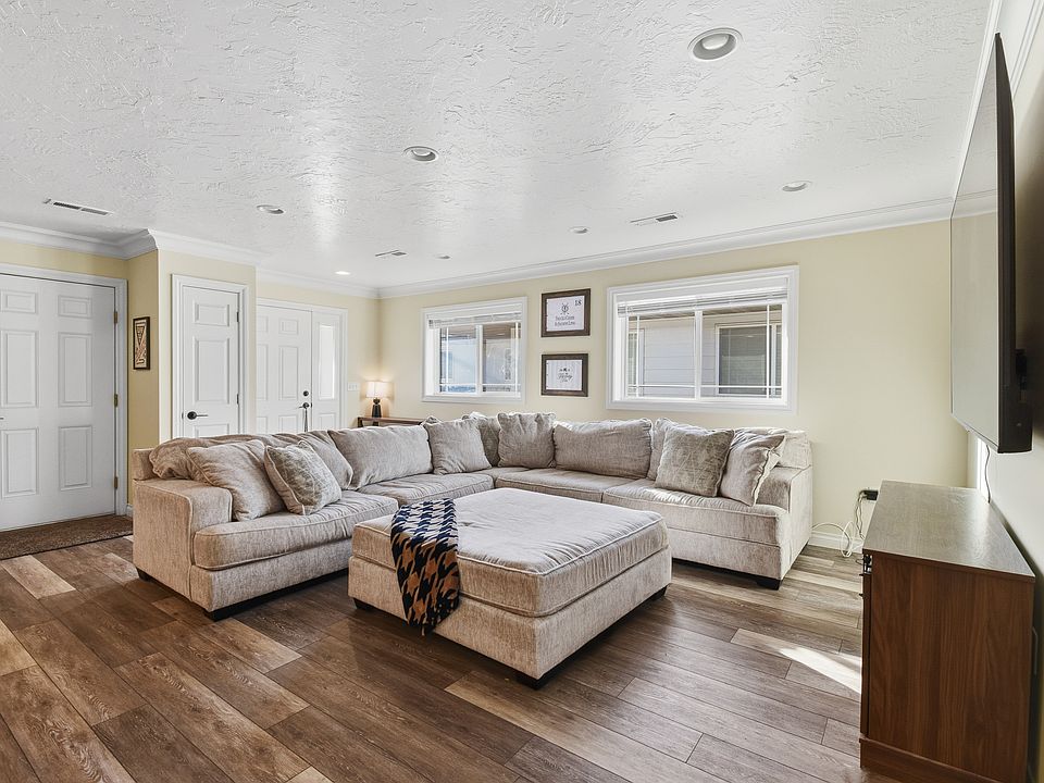 Why keep renting? This one level 2 bed condo has the space you want and located close to shopping. The update flooring, new updated bathrooms and new appliances give this space a great feel of quality. The living room, enhanced by crown molding and a fireplace, offers a welcoming space for relaxation and entertainment. The open floor plan enhances the sense of space and connectivity. The kitchen is thoughtfully designed with both style and functionality in mind, featuring crown molding, a kitchen peninsula, and a kitchen bar, perfect for casual dining or entertaining guests. Tray ceilings add an element of architectural interest, while the stone countertops provide a durable and elegant surface for meal preparation. The primary bedroom offers a private retreat, complete with crown molding and an ensuite bathroom. The bathroom features a walk in shower.