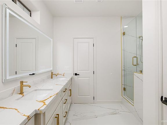 This home passed the flood test! Neighborhood and home stayed dry during Weslaco's flood. Beautiful modern home in Weslaco is located 1 minute from Expressway 83, Pins & Cues Bowling Center, and Sam’s Club coming soon! This home features 4 bed 2.5 bath 1 car garage with plenty of natural light. This home originally started construction in 2016 and was built solid, reinforced with cinder block masonry, and was completed in 2024. You cannot find new construction built like this anymore! Be the first to live in this stunning home! Master bath features led mirrors, his and her sink with a built-in vanity, spacious walk-in closet, and a large shower. Throughout the home, you will find porcelain tile flooring and custom calacatta quartz countertops and backsplash. The modern kitchen includes a gold kitchen sink and fixtures and custom soft close solid wood cabinets. This home features beach style side French doors, leading to a covered patio in the back yard, perfect for family barbecues!