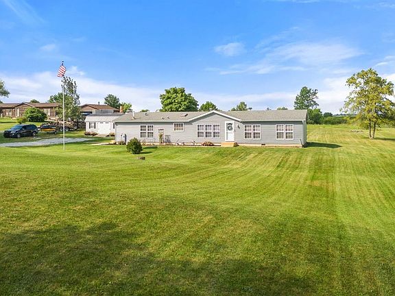 Welcome home to this charming 4 bed, 2 bath sprawling smart home sitting on over an acre of scenic property. This home has been nearly completely updated too! Entering into a spacious foyer you will notice the 4th bedroom with french doors on your right. An open concept kitchen, dining, and living room with wood burning fireplace are perfect for entertaining. Off of the kitchen is a second living room w/ french doors that's a great space to spread out and watch your favorite show, or could be used as a 5th bedroom if needed! The large primary bedroom boasts a luxury en-suite bathroom with a custom tile shower w/ seat, waterfall shower head, body sprayers and skylight! Another full bath and 2 nicely sized bedrooms as well. Additional area off of the kitchen and a nice mud/laundry room as well. Outside is an oversized shed that matches the home and a large concrete patio and gazebo that stays! All New: Roof & Well 2021, HVAC & WH, Siding, Door, Windows 2022, Sump Pump, Septic 2023.
