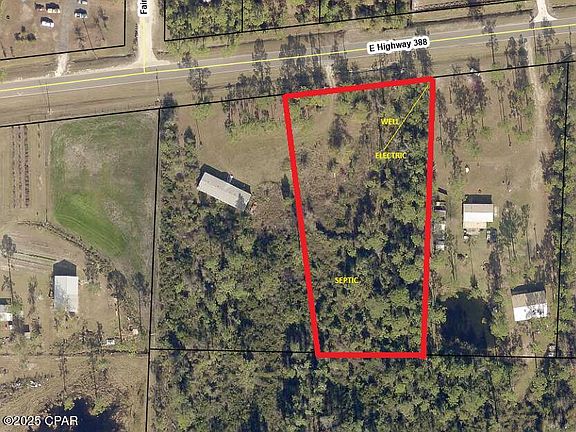 Welcome to your future oasis on this ready-to-build 1.51-acre lot, perfectly located at 3820 E Hwy 388 in Youngstown, Florida. Previously home to a mobile unit until its removal in 2017, this property comes equipped with existing well, septic, and electricity, ensuring a head start on your development plans. Whether you're envisioning a custom on-site build or planning to replace the former mobile home, this lot offers the flexibility to make your dreams a reality. Enjoy the serenity of rural living while benefiting from remarkable proximity to essential amenities. You're just a short drive away from vibrant shopping centers, top-tier hospitals, and the convenience of the airport, ensuring all your needs are within easy reach. In addition, you're close to picturesque beaches and bustling Panama City, allowing you to savor both the tranquility of the countryside and the vibrancy of nearby city life. Seize this rare opportunity to own a versatile piece of land in a flourishing area today!