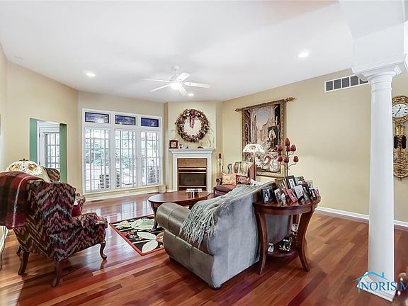 Don't overlook this gem! See it in person to appreciate the Brazilian cherry hardwood and an open great room with gas fireplace. Large windows overlook the deck and wooded lot. Nice eat-in kitchen with white cabinets and matching appliances. Split floor plan. Lots of storage - wow! Basement is an entertainer's paradise with 1339 sqft of finished space with custom bar, dishwasher, refrigerators, and climate-controlled wine cellar. Card room and home theater area with a full bathroom! Upstairs is a den/4th bedroom and loft bonus area. Private deck and wooded back yard. MUST SEE!