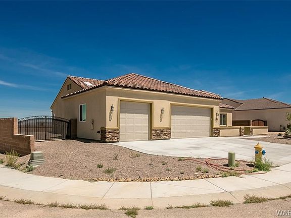Beautiful 3 bedroom, 2 bath, 3 car garage home in Castle Rock Village which is Kingman's only gated community. Great room and open floor plan and beautiful fireplace. Large master with large master bath with large walkin shower and walk in closet. Beautiful kitchen with lots of custom cabinets, stainless appliances and beautiful granite. Landscaped front and back with block wall and wrought iron fencing. Gorgeous views. Indoor laundry room and another laundry area in the garage. 5400 SF clubhouse with workout room, billards table, swimming pool, BBQ area, putting green, boce ball and horseshoe pit. Corner lot. Very private. Handicap assessible.