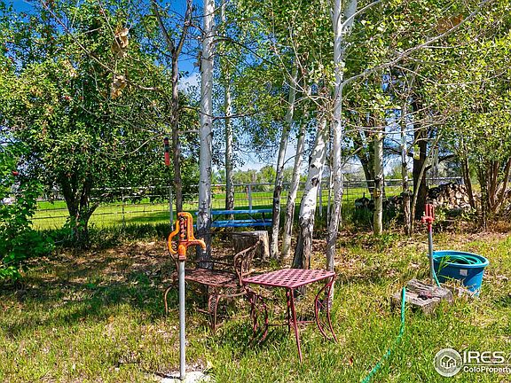 Discover your dream retreat on 7 acres, just 10 minutes from Old Town. Modern upgrades, a versatile floor plan, and outdoor amenities create a lifestyle that's both practical and playful. This 1,881 sq ft home is filled with light from massive west-facing windows (perfect sunsets included) and a south-facing bay window overlooking raised garden beds. Inside, enjoy open-concept living with blue pine accent beams and a cozy pellet stove. Forced air heating and AC provide year-round comfort. The updated kitchen boasts all-maple cabinetry, peekaboo built-ins, laminate countertops, and stainless steel appliances including a Whirlpool French door refrigerator and a Kenmore range. The mudroom features an LG washer/dryer and utility sink. The primary suite feels like a retreat with a fully updated bath, walk-in closet, and electric fireplace. Two additional bedrooms and a remodeled guest bath provide space for family or visitors. New LVP flooring, a 2023 roof, and top-down/bottom-up double-pane windows ensure style and efficiency throughout. A large east-facing patio is perfect for morning coffee or evening gatherings. The orchard is a showstopper, producing apples, pears, peaches, plums, cherries, currants, and more. Outbuildings include chicken coops, fenced pasture, loafing shed, and a garden shed. For hobbyists or professionals, an oversized insulated 2-car garage and a 45'x30' workshop with 220v power, dual garage doors, built-in workbenches, shelves, and lockers provide endless opportunity. With an RV hookup, quality hay production, pasturage, and frost-free spigots for easy watering, this property is designed for convenience. Whether you dream of gardening, raising animals, tinkering in the shop, or simply enjoying wide-open skies minutes from the city, this Fort Collins gem delivers. One share of North Poudre Irrigation Company water is separately available, allowing the owner to rent additional water.