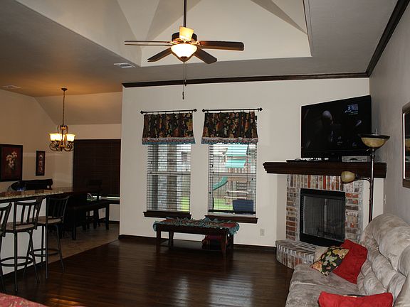 Beautiful 4 bedroom home located in South East Edmond. Easy access to the Turnpike. Nice quiet neighborhood with neighborhood pool and clubhouse. Open floor plan with a three car garage. Master bathroom is of good size with a nice walk in closet and jetted bathtub with two sinks. Kitchen has stainless steel appliances with a pantry and lots of cabinet space. Hardwood floors in the living area. Backyard is a good size with a covered patio. Very nice home will sell quickly. HOA dues are paid annually For Sale by Owner at this time, not interested in realtor.