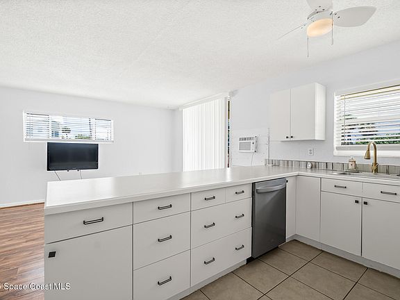 Live the summer dream year-round in this bright and breezy 1-bed, 1-bath condo just steps from the sand in Cocoa Beach. Located in a small oceanfront complex with direct beach access, this ground-floor corner unit serves up natural light, a playful blend of textures, and laid-back charm. Inside, you'll love the open layout with wood-look flooring, kitchen has ample cabinet space. Fresh paint and coastal-style accents bring a splash of personality, while the updated vanity and fixtures in the bath keep things crisp and clean. The spacious bedroom features soft blue walls, dual windows, and a mirrored closet, perfect for catching every ray of Florida sunshine. Bonus? A utility closet with enough space to stash all your beach gear or even convert to a cozy nook or bunk. Low-maintenance, pet-friendly, and steps from the shore, this is the kind of place that feels like vacation every day!