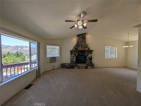 BEAUTIFUL mountain views from this lovely 3 bedroom, 2 full bath home located near the park offering comfort and convenience. Upon entry you are welcomed into a light and airy living space with a gorgeous wood burning rock fireplace as the focal point of the living room, perfect for those winter nights. The kitchen features a new gas range, new dishwasher, and a spacious pantry. The primary suite has a walk in closet and access to a full bath. The hallway leads to a laundry closet, 2 additional bedrooms, and another full bath. Both bathrooms have new toilets. The large two car attached garage has ample space for parking and has access to an unfinished basement providing extra storage. The roof is only 2 years old! The front deck is a nice place to sit and enjoy the views and serenity. With a desirable location and not far off a paved road, this is a wonderful home worth taking a look at. Enjoy four seasons in a mountain community with a small town feel, yet less than an hour from Bakersfield and Santa Clarita.