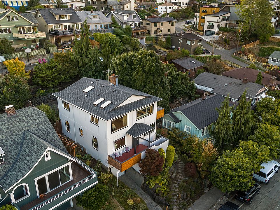 Non-stop views from this fully renovated home in Belvidere. An open floor plan and modern updates provide a contemporary fit and finish, with ample space for home office and study areas. Large picture windows illuminate comfortable living spaces and the thoughtful layout accentuates protected views: Seattle Skyline, Sound, and Cascades. Features: view-decks, skylights, new systems, siding, roof, windows, AC, garage. Quiet residential street with fenced backyard with level patio and mature plantings.