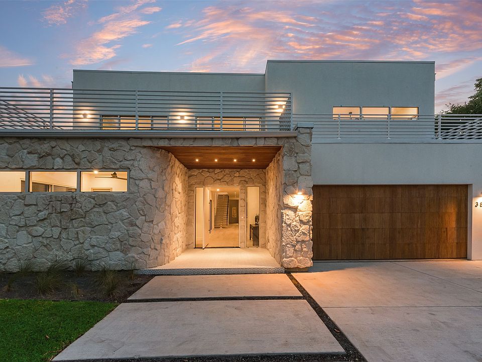 Enjoy an open-concept layout, dedicated home office, and a media room perfect for entertaining. The chef’s kitchen, spa-inspired baths, and elegant finishes throughout evoke the feel of a private beach resort. Upstairs, a sun deck provides the perfect space to unwind and take in the Texas skies.