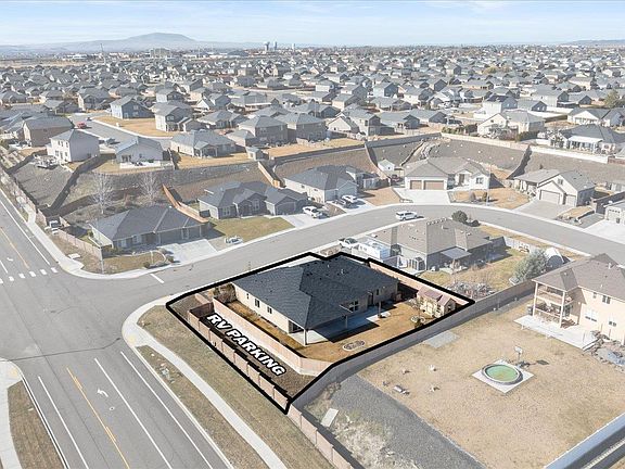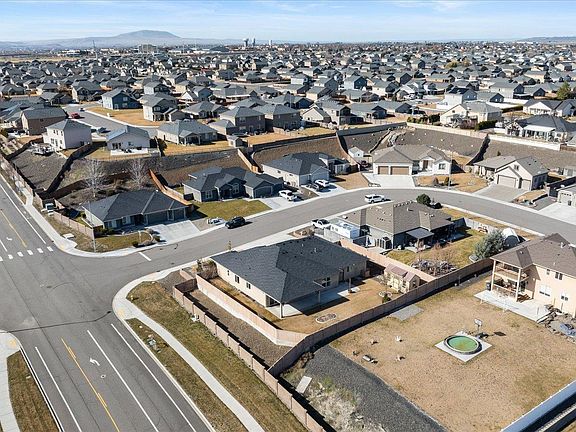 MLS# 282013 Custom built in 2014 by renowned Tri-Cities builder Hammerstrom Homes, this meticulously maintained single-owner residence offers 2,033 sq. ft. of thoughtfully designed living space on a generous 0.29-acre corner lot in North Pasco’s First Place neighborhood. This pristine home offers sweeping vistas from its backyard or kitchen window.The standout feature is the impressive 1,350 sqft garage, equipped with multiple 30A 220V outlets, plentiful 110V outlets, extra overhead lighting and overhead storage racks—perfect for automotive enthusiasts or workshop needs. Additional storage for yard and garden tools is available in the large backyard shed.The open-concept great room seamlessly connects the kitchen, dining, and living areas, anchored by a corner-set gas fireplace. The kitchen features granite countertops and rich-stained hardwood cabinets. Four generously sized bedrooms offer comfortable living quarters, complimented by 1.75 bathrooms, including a spacious mud-set walk-in tile shower in the primary ensuite bath.Premium features throughout include engineered hardwood and tile flooring, wood-wrapped windows, and a comprehensive heat trace system in gutters and drainage troughs. The 50-foot patio, divided into covered and uncovered spaces, creates an ideal outdoor living area enhanced by strategic solar lighting. Enjoy warm sunrises and shaded afternoons in the highly desirable east-facing backyard.Additional amenities include a mudroom, dedicated laundry room, and an energy-efficient natural gas furnace and hot water tank. The corner lot position provides extra parking, including a large gated RV/trailer parking space.Schedule your private showing today to appreciate the unmatched craftsmanship and attention to detail of this Hammerstrom-built home.