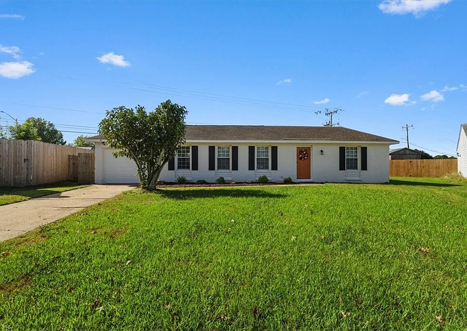 Renovated, 4 bedroom, 2 full bath charming ranch style home with countless improvements- New siding, new HVAC, new hot water heater, new LVP flooring with updated baseboards. white cabinetry with gorgeous white quartz counters in kitchen with a new range, microwave, and dishwasher. New bath vanities with new lighting and mirrors, new ceiling fans and blinds throughout. New exterior and interior lighting, attractively painted in neutral warm colors with fresh paint inside and out, new shutters and plantings. At the end of a cul-de-sac with a large fenced backyard just waiting for you to come love it! Close to shopping centers, businesses, and Town Center. Easy to show!